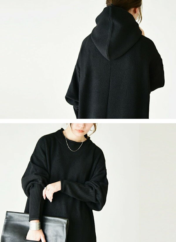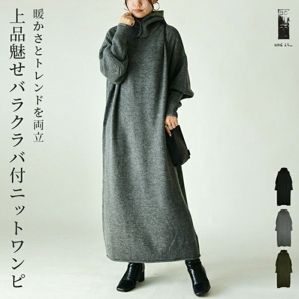 ワンピース レディース バラクラバ 付き セット ニットワンピース ニットワンピ ロング丈 ロングワンピ 長袖 フード付き 取り外し可能 シンプル 無地 お洒落 大人可愛い トレンド ぽわん袖 ボリュームスリーブ ロングリブ ブラック 杢グレー モスグリーン 黒 緑 秋 冬 24aw AW, M-L M L エム エル andit_ and it_ andit ANDIT_ ANDIT あんどいっと アンドイット 新作 NEW カジュアル ナチュラル きれいめ 大人可愛い 大人女子 お洒落 トレンド シンプル ニュアンス プチプラ ファッション レディースファッション 20 30 40 50 20代 30代 40代 50代