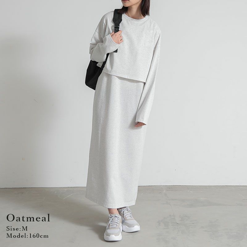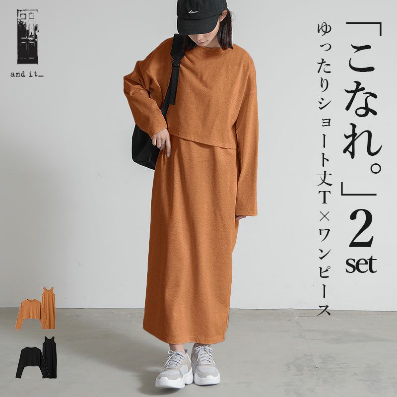 ワンピース ノースリーブ トップス カットソー 長袖 ショート丈 レディース 春 夏 セット 2点セット 無地 シンプル カジュアル ロングワンピ ロング丈 綿100% コットン100% 綿 コットン オートミール ライトブラウン ブラック 黒 M andit_ and it_ andit ANDIT_ ANDIT あんどいっと アンドイット SS 新作 NEW カジュアル ナチュラル きれいめ 大人可愛い 大人女子 お洒落 トレンド シンプル ニュアンス ゆったり 楽ちん ラフ 体型カバー ぽっちゃり プチプラ ファッション レディースファッション ママ服 20 30 40 50 20代 30代 40代 50代