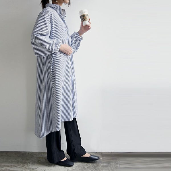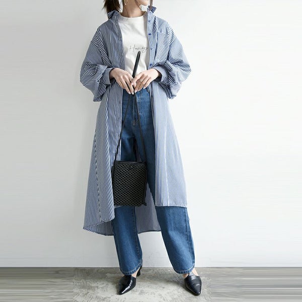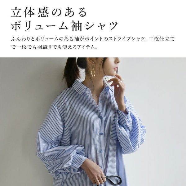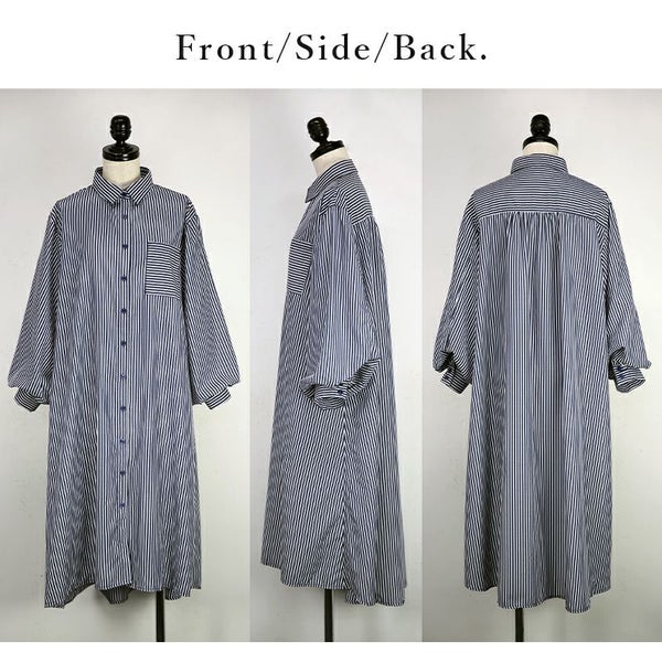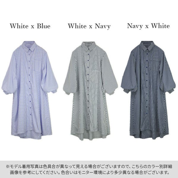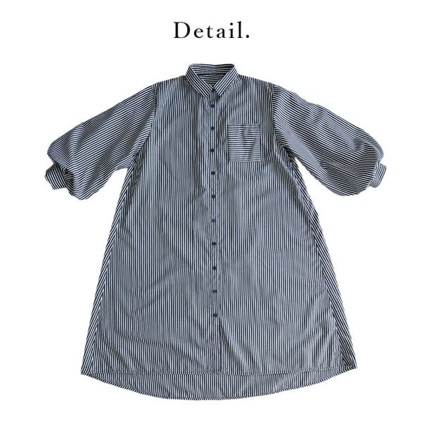 ワンピース シャツワンピ シャツワンピース ロング ロングワンピース シャツ ストライプ ストライプシャツ 柄シャツ ボリューム袖 ボリュームスリーブ ぽわん袖 Aライン ふんわりシルエット ふんわり 春夏 長袖 春服 夏服 ブルー ネイビー ホワイト 春シャツ 前開き 羽織 羽織り 重ね着 レイヤード 二の腕カバー スタイルカバー andit_ and it_ andit ANDIT_ ANDIT あんどいっと アンドイット SS 新作 NEW カジュアル ナチュラル きれいめ 大人可愛い 大人女子 お洒落 トレンド シンプル ニュアンス M Mサイズ ゆったり 楽ちん ラフ 体型カバー ぽっちゃり プチプラ ファッション レディースファッション ママ服 20 30 40 50 20代 30代 40代 50代