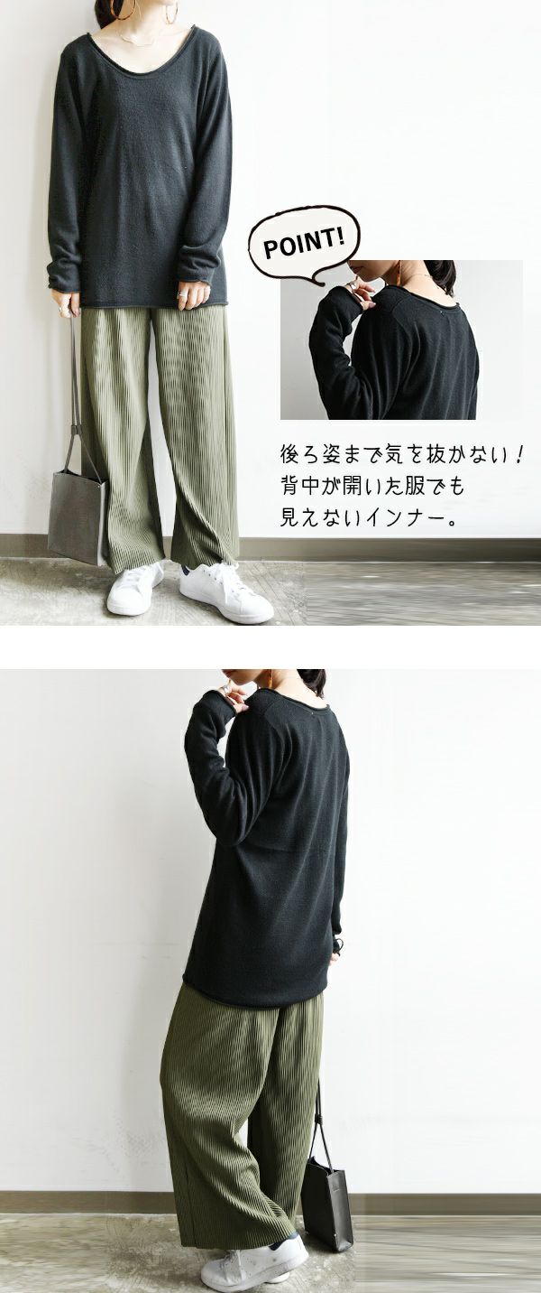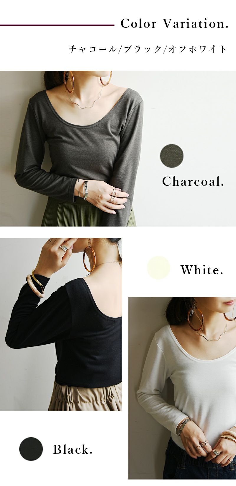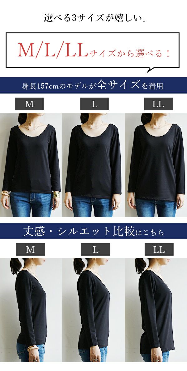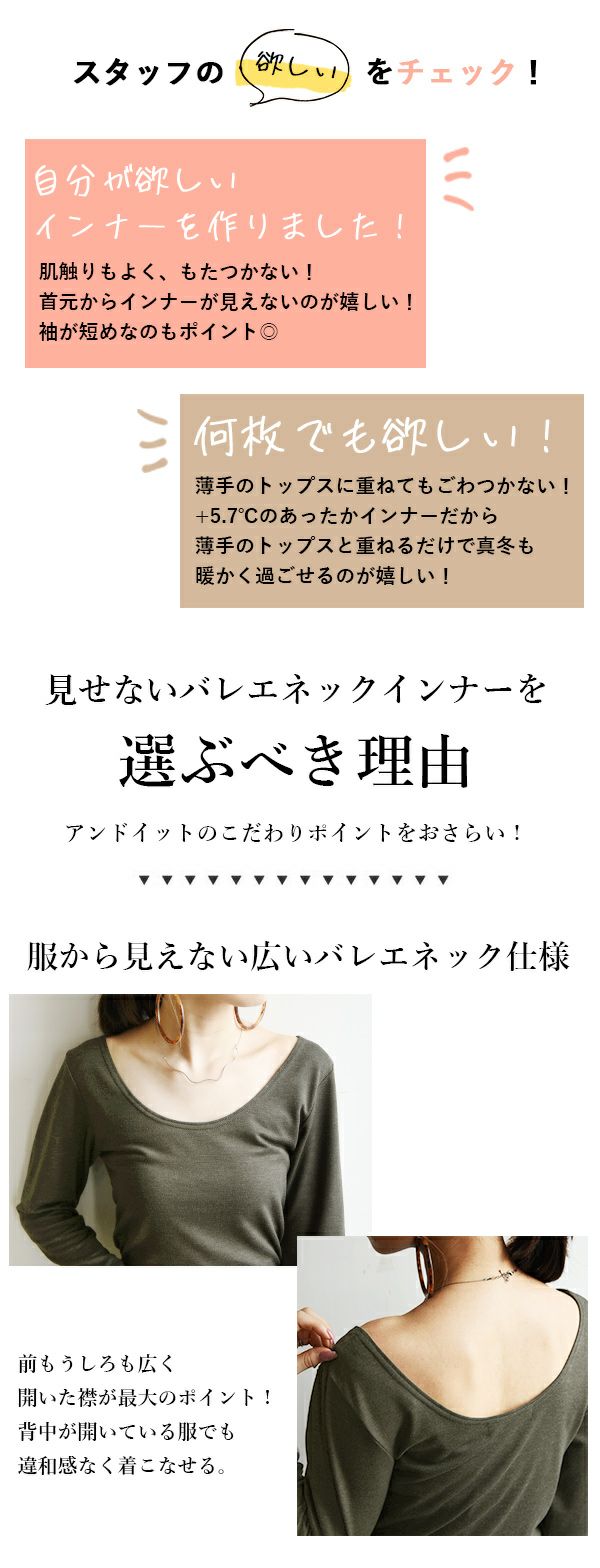 - あったか裏起毛バレエネックカットソー(8分袖) M L LL 【メール便対応可】
