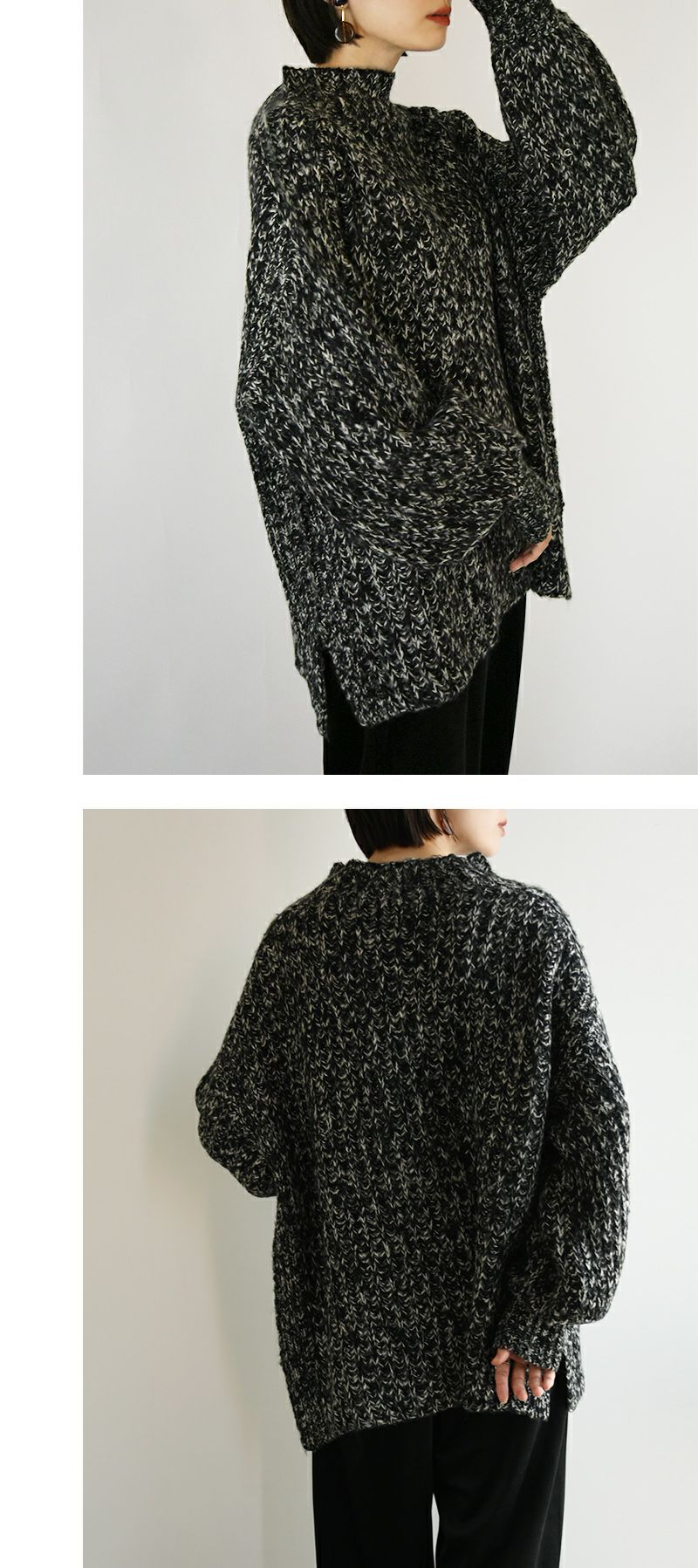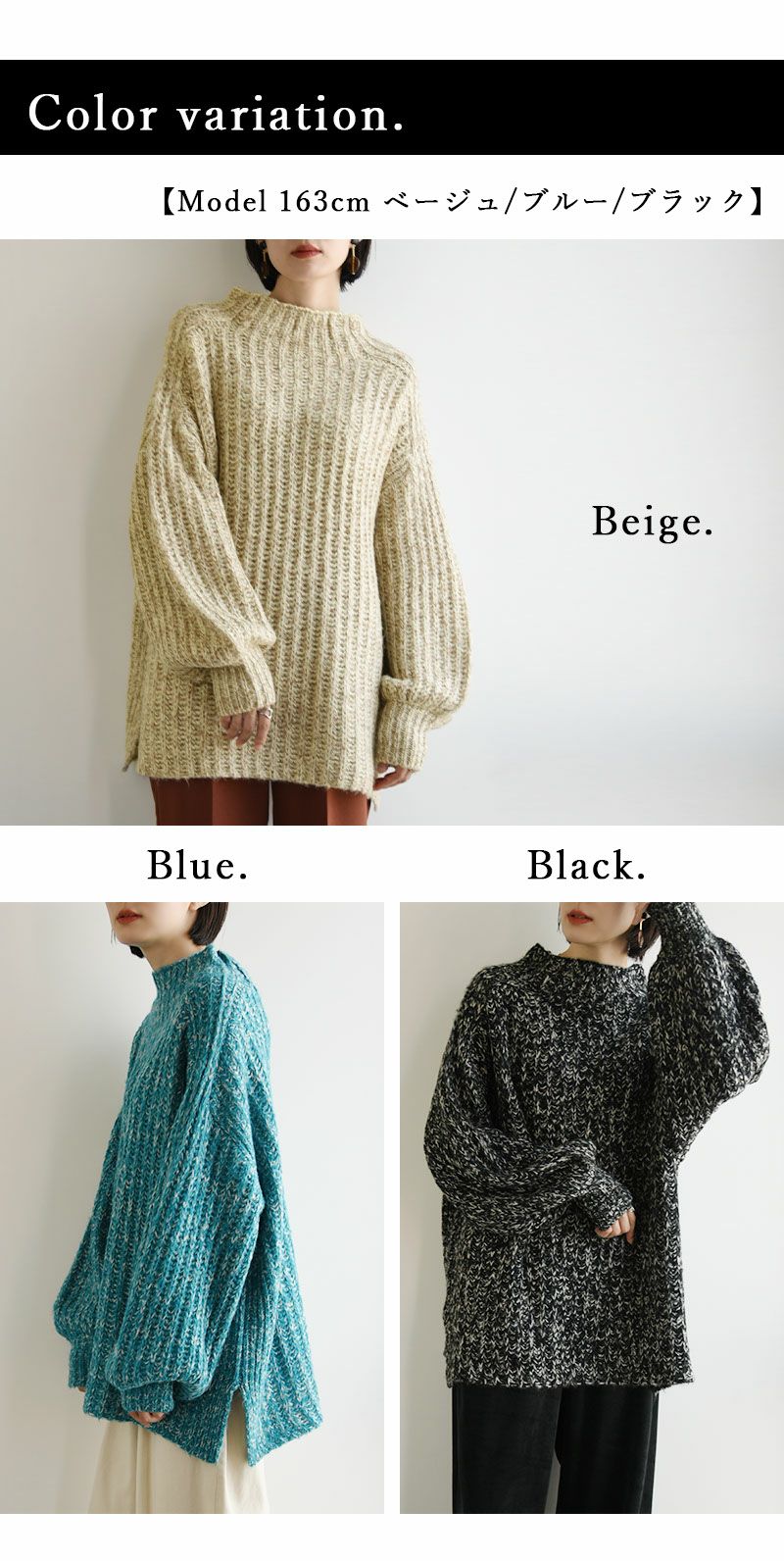 ニット レディース 冬 モヘアタッチ ローゲージニット 秋冬 ミックスカラー ボリュームスリーブ スリット お洒落 大人かわいい ワイド オーバーサイズ ゆったり ウォッシャブルニット 洗えるニット 洗濯機可能 お手入れ簡単 ベージュ ブラック ブルー 黒 青 長袖 andit_ and it_ andit ANDIT_ ANDIT あんどいっと アンドイット AW 新作 NEW カジュアル ナチュラル きれいめ 大人可愛い 大人女子 お洒落 トレンド シンプル ニュアンス M L Mサイズ Lサイズ M-L 楽ちん ラフ ぽっちゃり プチプラ ファッション レディースファッション ママ服 20 30 40 50 20代 30代 40代 50代