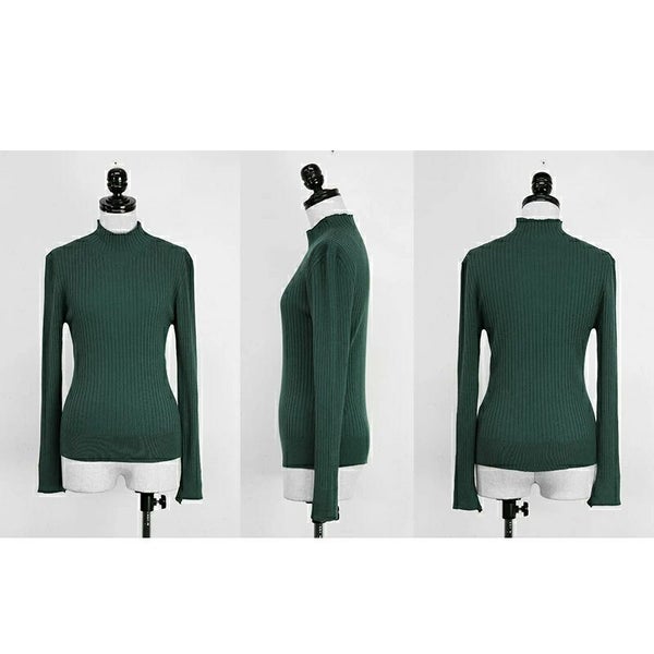 柔らかい肌触りのレーヨンナイロンニット。インナーとしても使いやすいハイネックデザイン♪