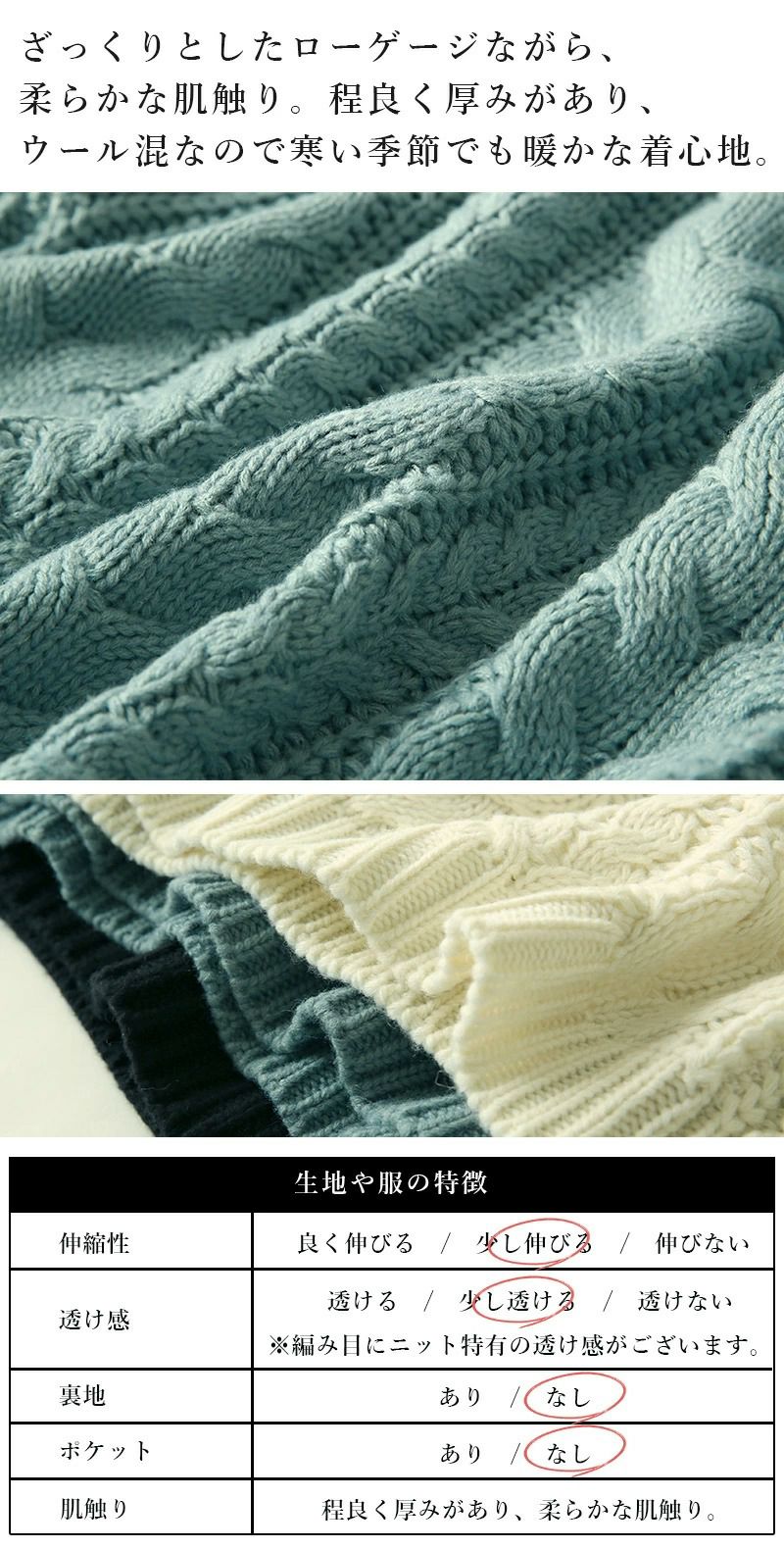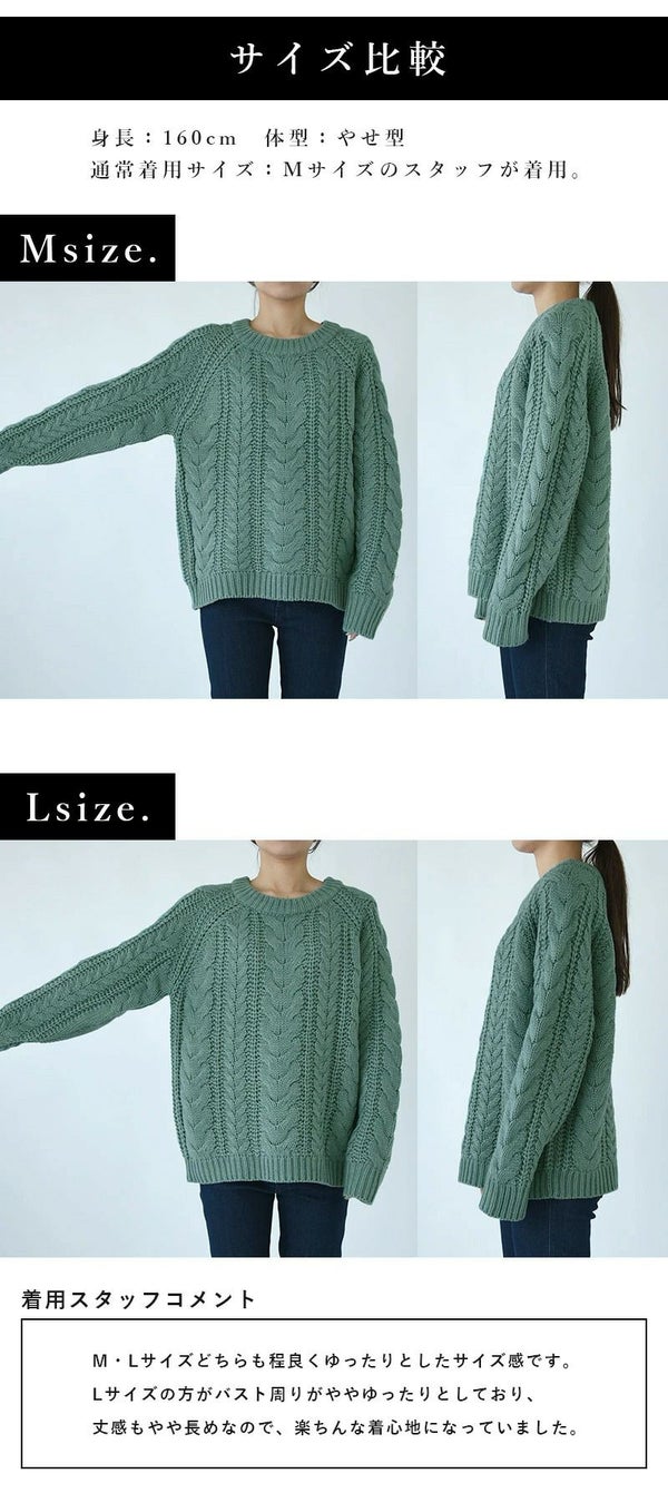 - アクリルウールケーブルニット M L 【メール便対応不可】