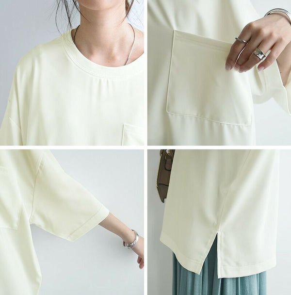 トップス カットソー レディース メンズ ユニセックス 男女兼用 春夏 半袖 防汚加工 撥水 撥油 効果 汚れにくい シミになりにくい 落ちやすい 食べこぼし 家事 雨の日 レジャー 釣り キャンプ Tシャツ ペア カップル 夫婦 ワイド オーバーサイズ お尻が隠れる ゆったり 体型カバー シンプル 無地 ポケット オフホワイト ベージュ グレー ネイビー 白 紺 M L LL and it_ andit ANDIT_ ANDIT あんどいっと アンドイット SS 新作 NEW カジュアル ナチュラル きれいめ 大人可愛い 大人女子 お洒落 トレンド シンプル ニュアンス ゆったり 楽ちん ラフ ぽっちゃり プチプラ ファッション レディースファッション ママ服 20 30 40 50 20代 30代 40代 50代