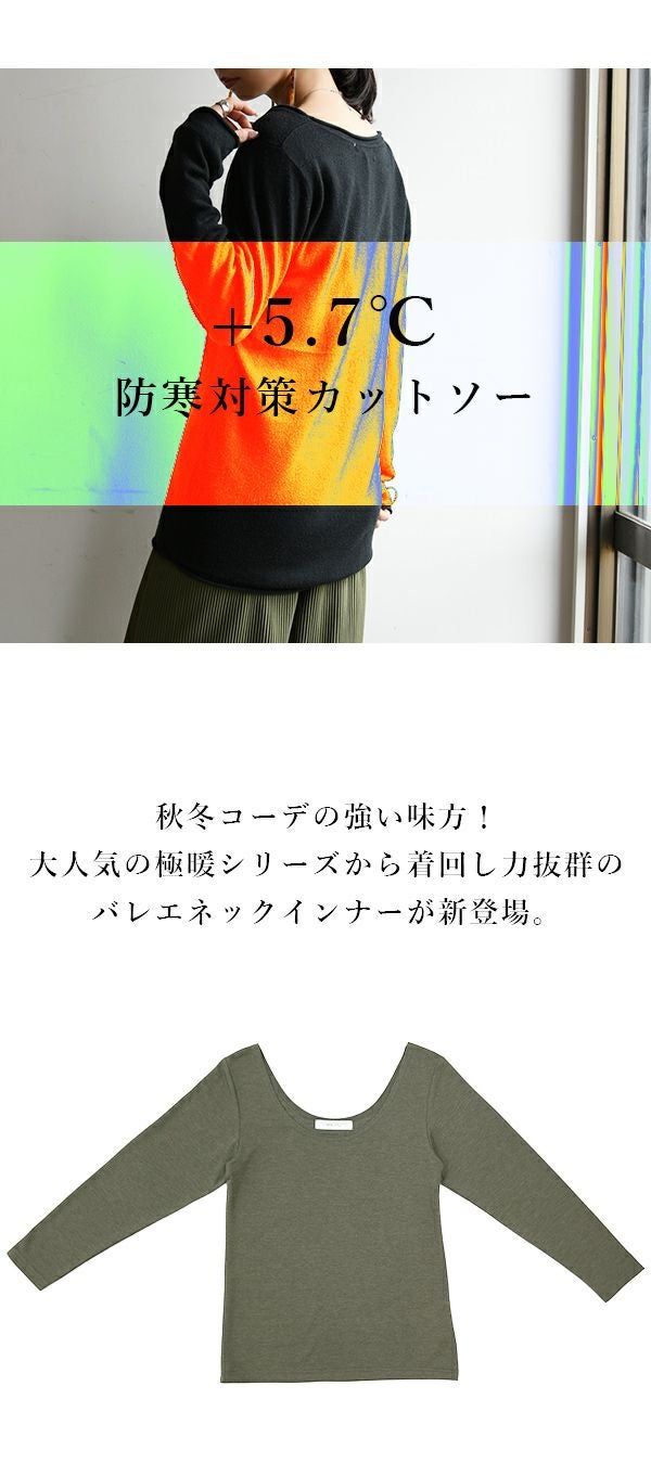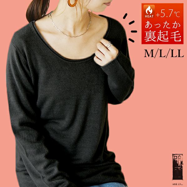 - あったか裏起毛バレエネックカットソー(8分袖) M L LL 【メール便対応可】