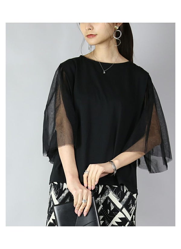 \待望の大人気漫画家モチコさんとのコラボアイテム/涼しいのにお洒落見え!二の腕隠れる大人のためのシアーカットソー。