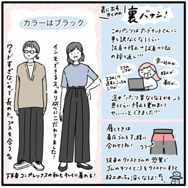 \待望の大人気漫画家モチコさんとのコラボアイテム/下半身の悩みを解決!ラフにスッキリ見えが叶うストレートパンツ。