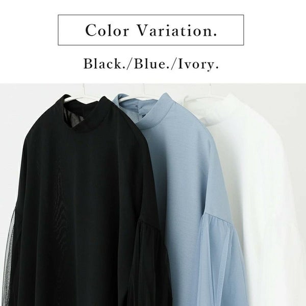 トップス ブラウス レディース 春夏 春服 チュール スリーブ ハイネック 長袖 ボリュームスリーブ チュールスリーブ 大人可愛い 重ね着 レイヤード 上品 きれいめ 綺麗め アイボリー ブルー ブラック 白 黒 M Mサイズ andit_ and it_ andit ANDIT_ ANDIT あんどいっと アンドイット SS 新作 NEW カジュアル ナチュラル きれいめ 大人可愛い 大人女子 お洒落 トレンド シンプル ニュアンスゆったり 楽ちん ラフ 体型カバー ぽっちゃり プチプラ ファッション レディースファッション ママ服 20 30 40 50 20代 30代 40代 50代