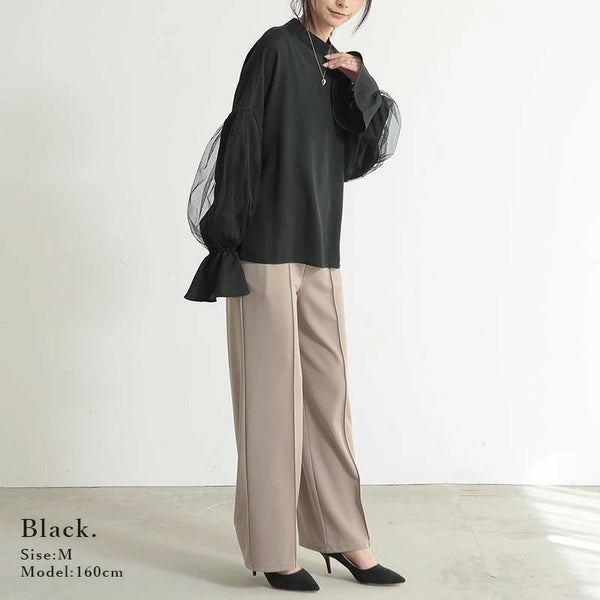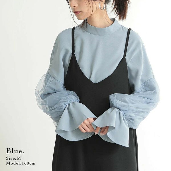 チュールスリーブハイネックブラウス M 【メール便対応可】