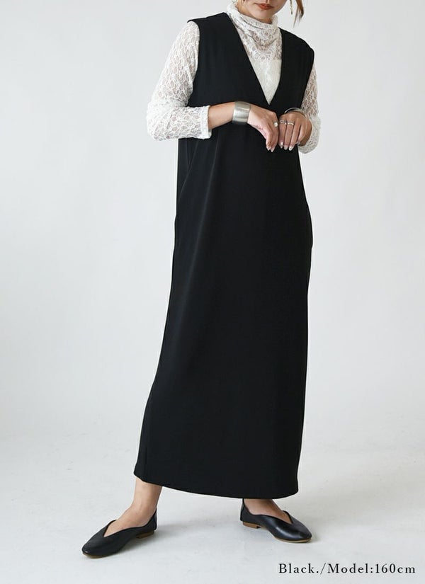すっきり大人Vネック!ロングシーズン着回しできる主役級ワンピ☆