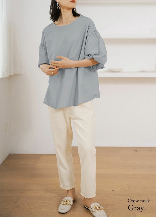 ブラウス レディース 春 夏 選べる 2タイプ パフスリーブ フレアシルエット トップス ボリューム袖 上品 着回し 体型カバー 二の腕カバー ふんんわり クルーネック Vネック バックリボン ホワイト ブラック ライトピンク ベージュ グレー 白 黒 M L andit_ and it_ andit ANDIT_ ANDIT あんどいっと アンドイット SS 新作 NEW カジュアル ナチュラル きれいめ 大人可愛い 大人女子 お洒落 トレンド シンプル ニュアンス ゆったり 楽ちん ラフ 体型カバー ぽっちゃり プチプラ ファッション レディースファッション ママ服 20 30 40 50 20代 30代 40代 50代
