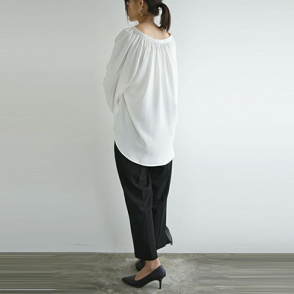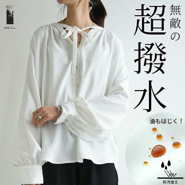 ブラウス レディース 長袖 春夏 防汚加工 リボン ネックリボン 上品 女性らしい トップス 撥水 撥油 効果 汚れにくい シミになりにくい 落ちやすい 食べこぼし 家事 雨の日 レジャー ゆったり 体型カバー オフィス オフィスカジュアル シンプル オフホワイト 白 M-L M L サイズ andit_ and it_ andit ANDIT_ ANDIT あんどいっと アンドイット SS 新作 NEW カジュアル ナチュラル きれいめ 大人可愛い 大人女子 お洒落 トレンド シンプル ニュアンス ゆったり 楽ちん ラフ 体型カバー ぽっちゃり プチプラ ファッション レディースファッション ママ服 20 30 40 50 20代 30代 40代 50代