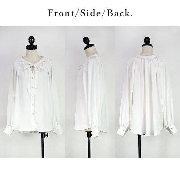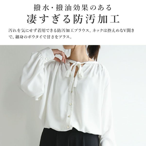 撥水・撥油加工で汚れにくい!汚れても落ちやすい!前リボンが女性らしいブラウス♪