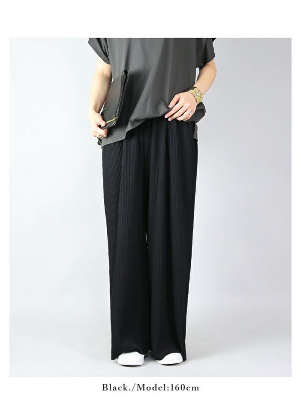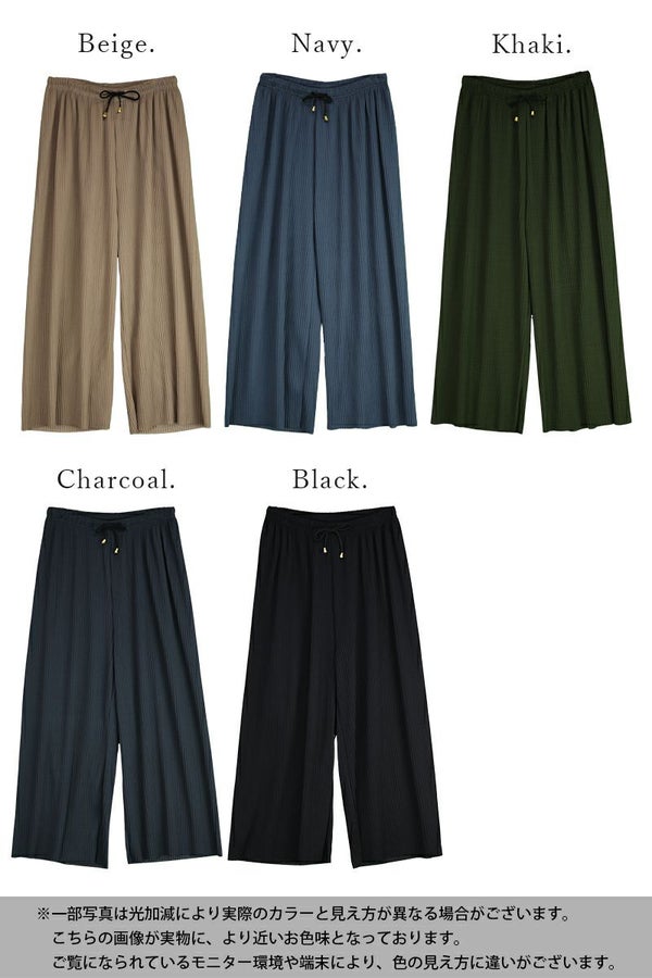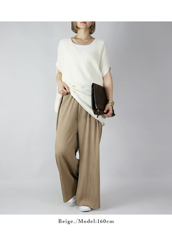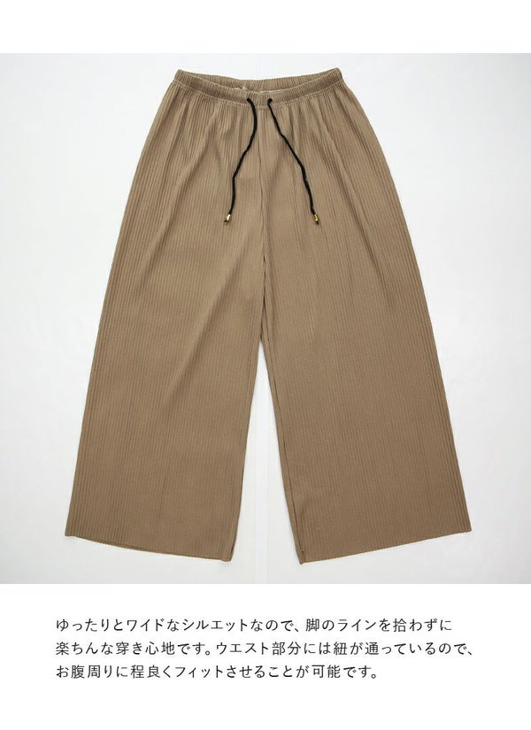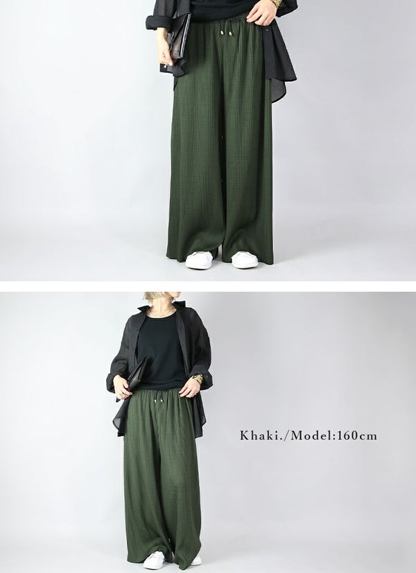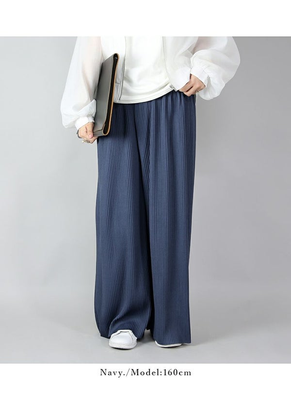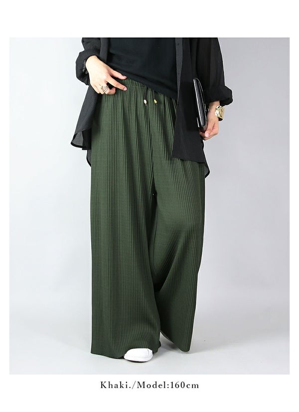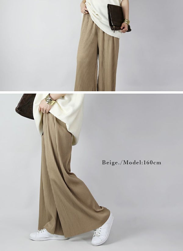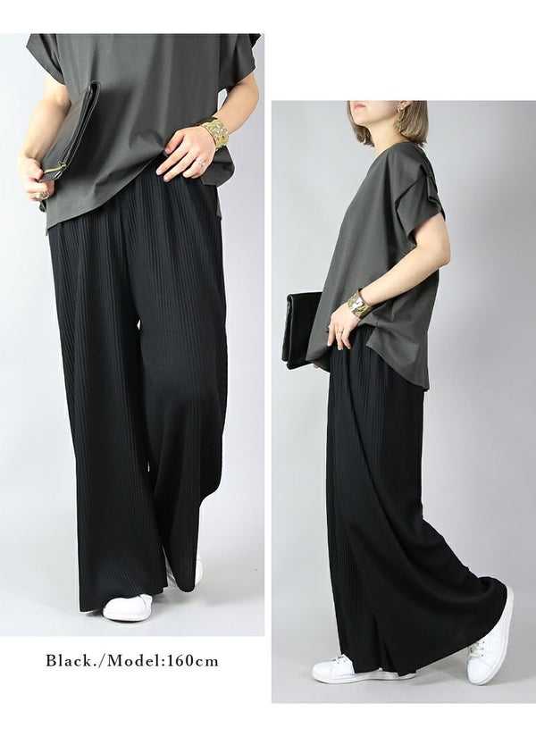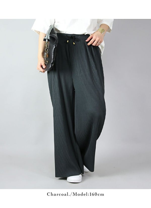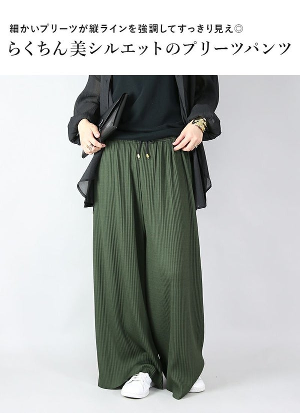 らくちん美シルエット!気になる部分をカバーしつつすっきり見えが叶うプリーツワイドパンツ♪