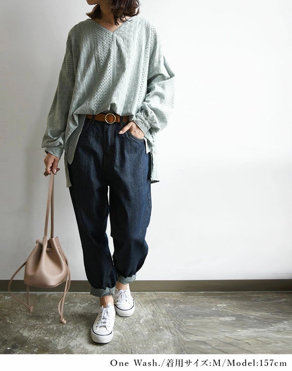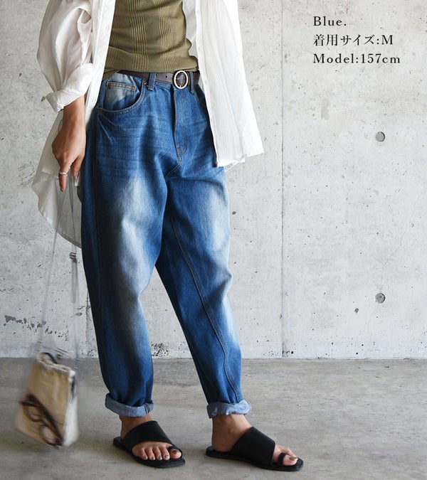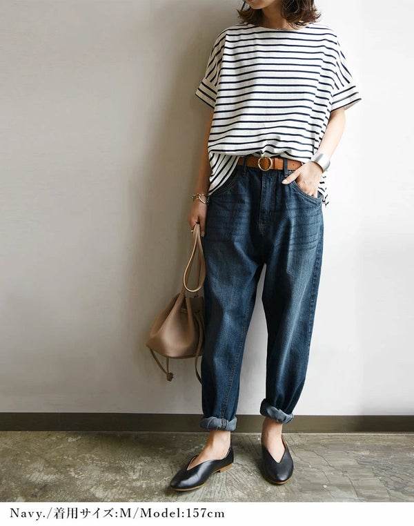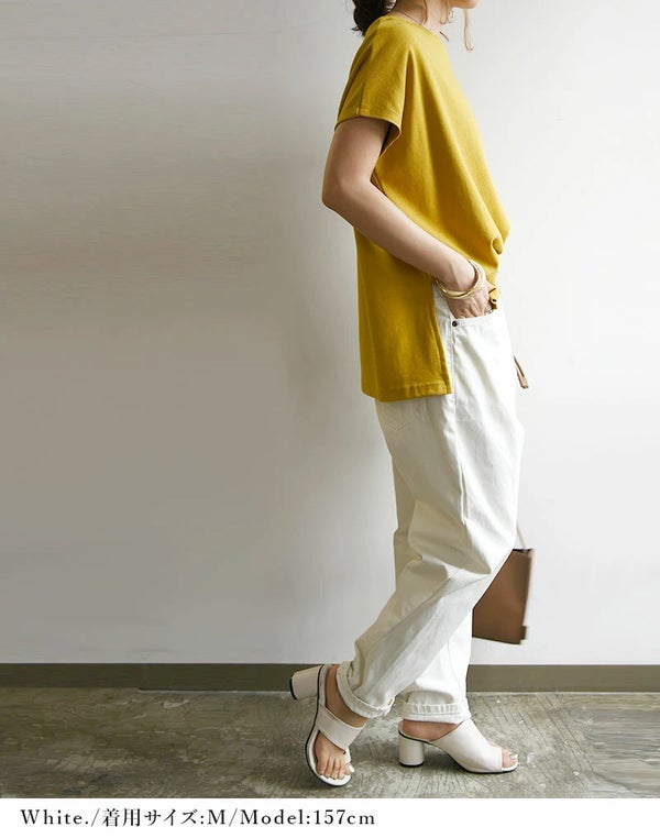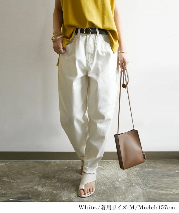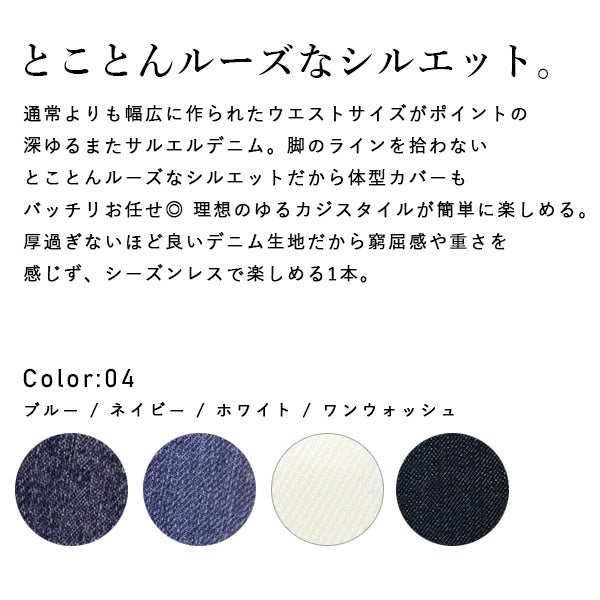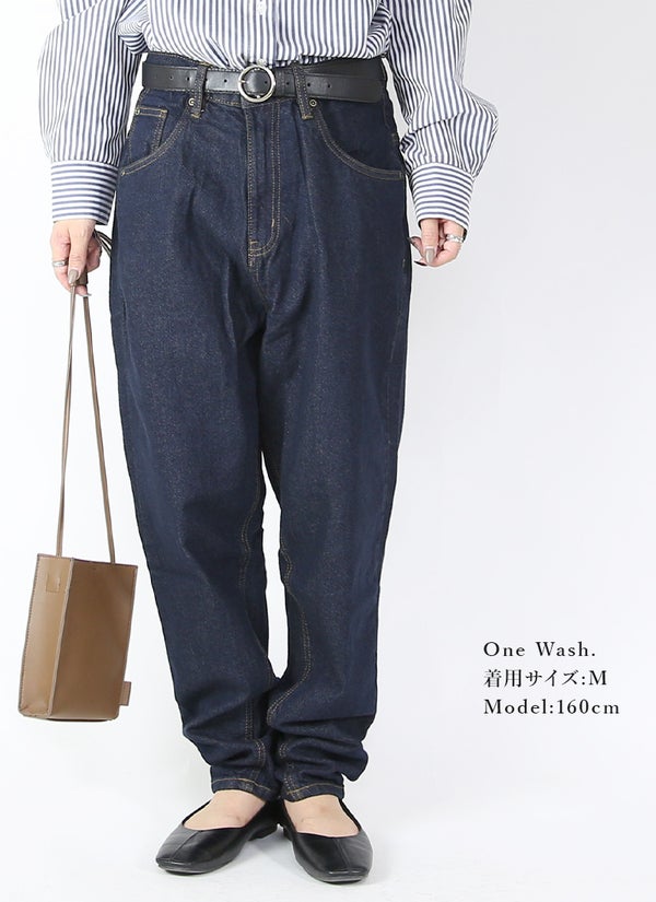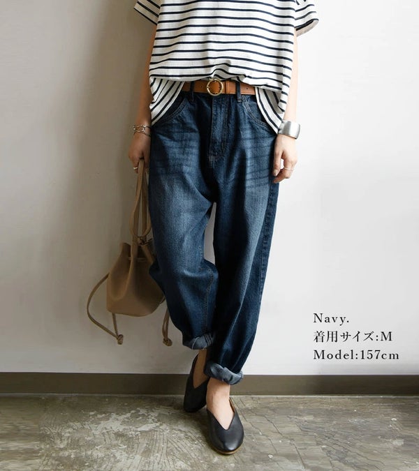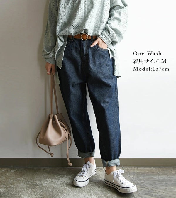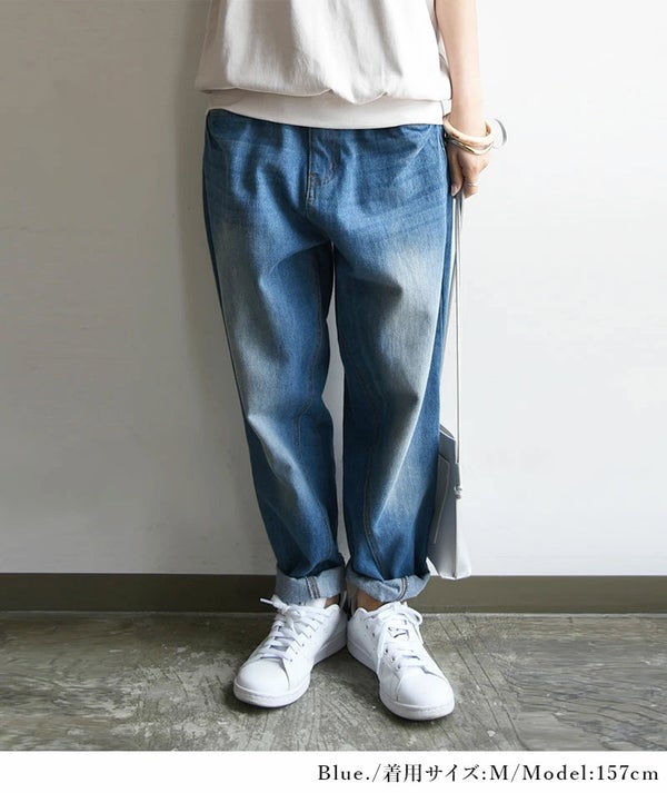 裾を折っても大人っぽく格好よくはけるシルエットがキレイなワイドストレートパンツ。高見えする綿100%デニムを使用。ウエストゴムで普段履きにもってこいのきれいめカジュアルパンツ。