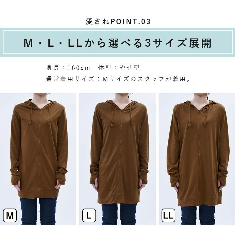 他の画像を見る 手の甲までしっかりカバーする、着る日焼け防止アイテム。ロング丈でヒップラインもカバーしてくれる春夏の大活躍の薄手UVカットパーカー! UVカットロングパーカー M L LL 【メール便対応可】 販売価格 ¥ 3,298 税込 カートに入れる お気に入りに登録する
