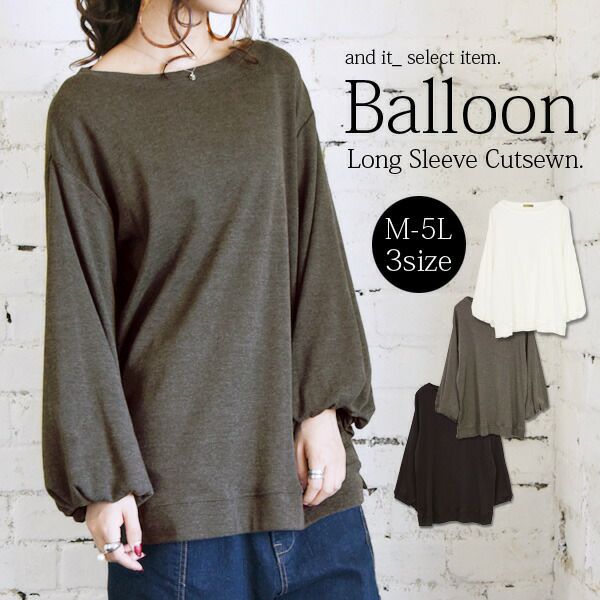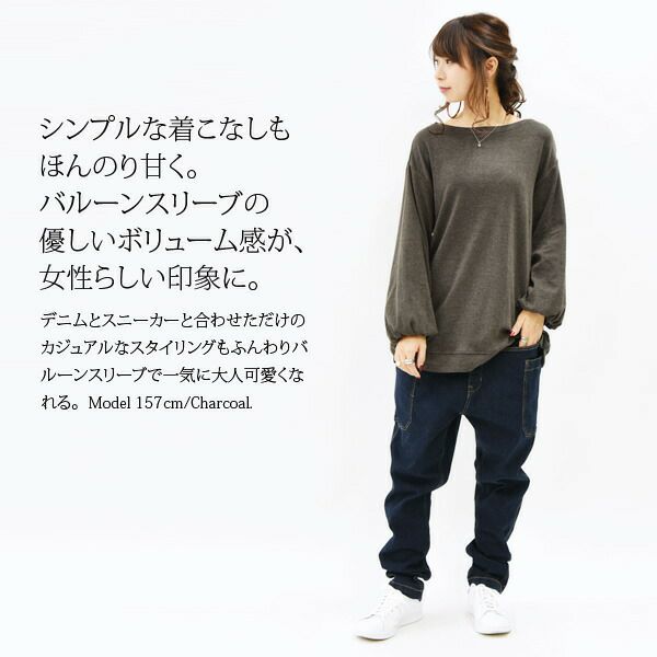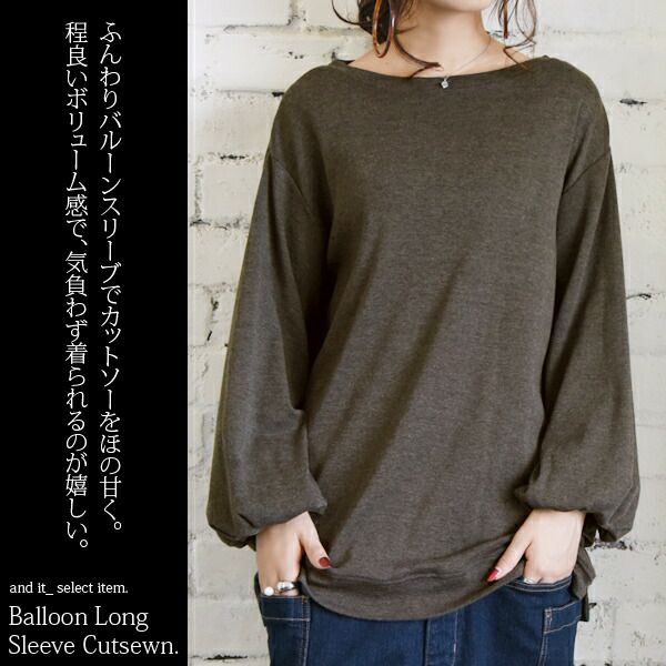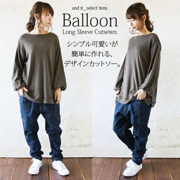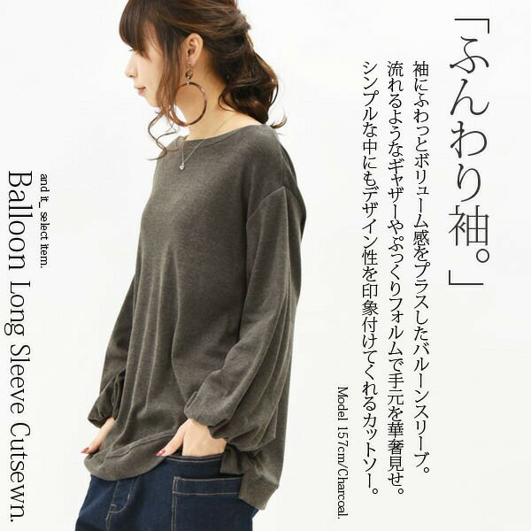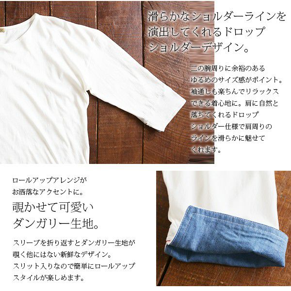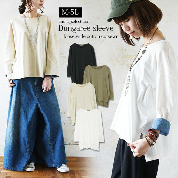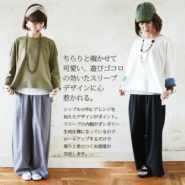 ダンガリースリーブゆるワイドコットンカットソー 【メール便対応可】