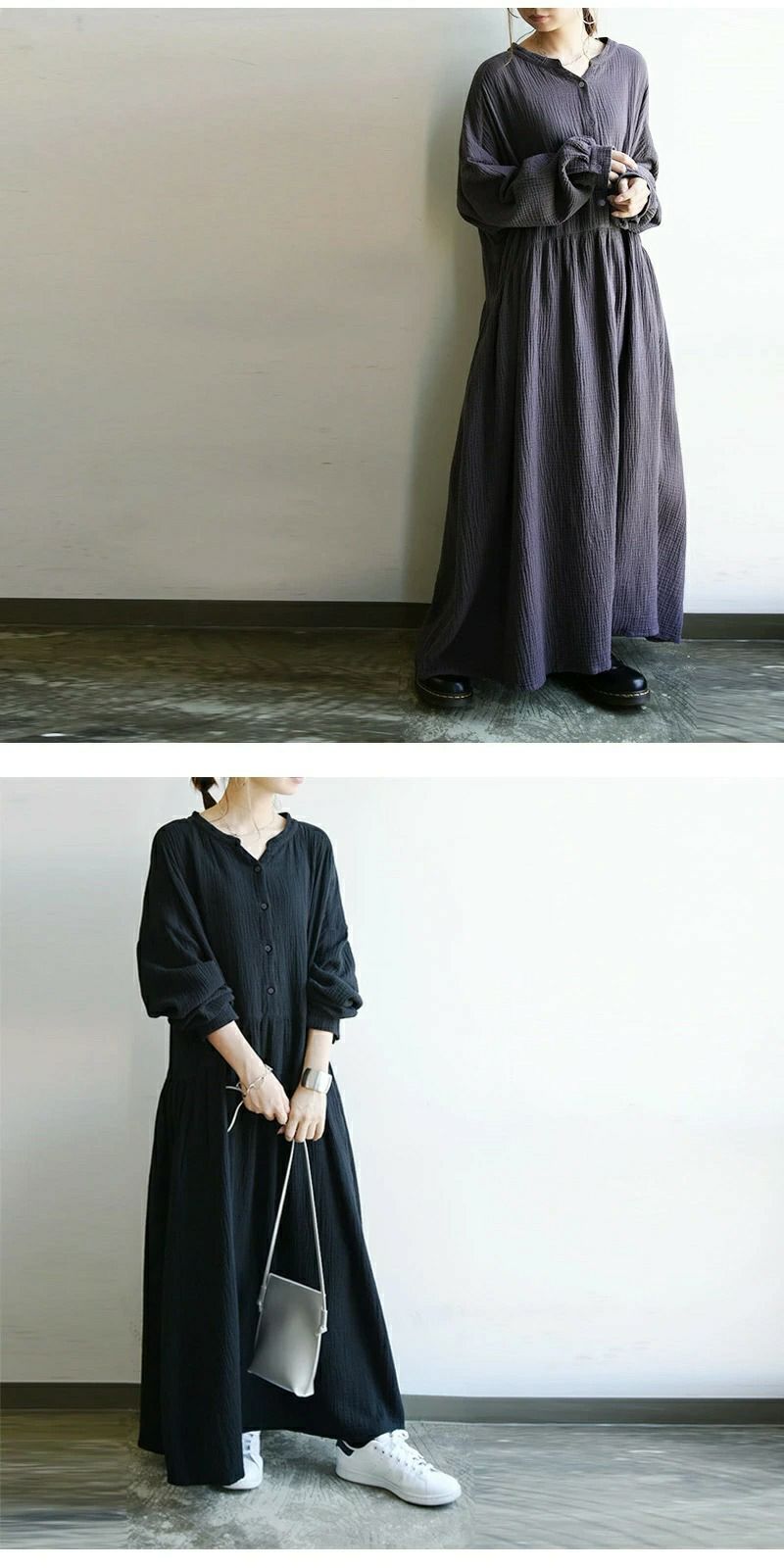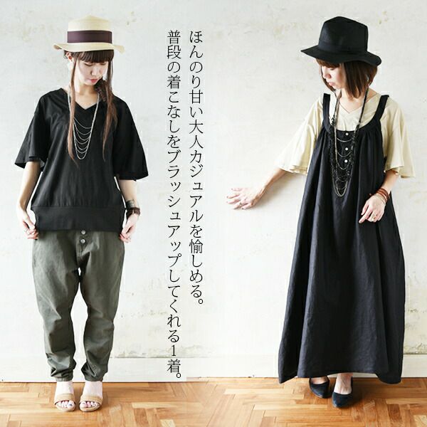 日焼け予防×冷房対策として使える。ふわっと広がるゆったりAラインシルエットのコットンワンピース♪