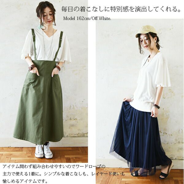 ベイカーポケットストレッチデニムロングスカート 【メール便対応不可】