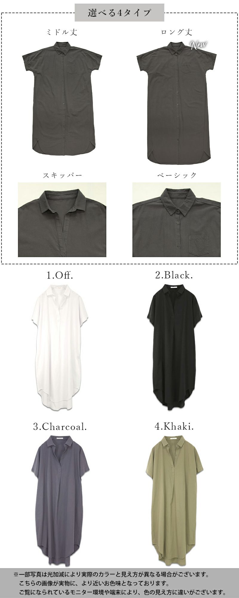 選べる4type!スキッパー&ベーシックシャツワンピース M L 【メール便対応可】