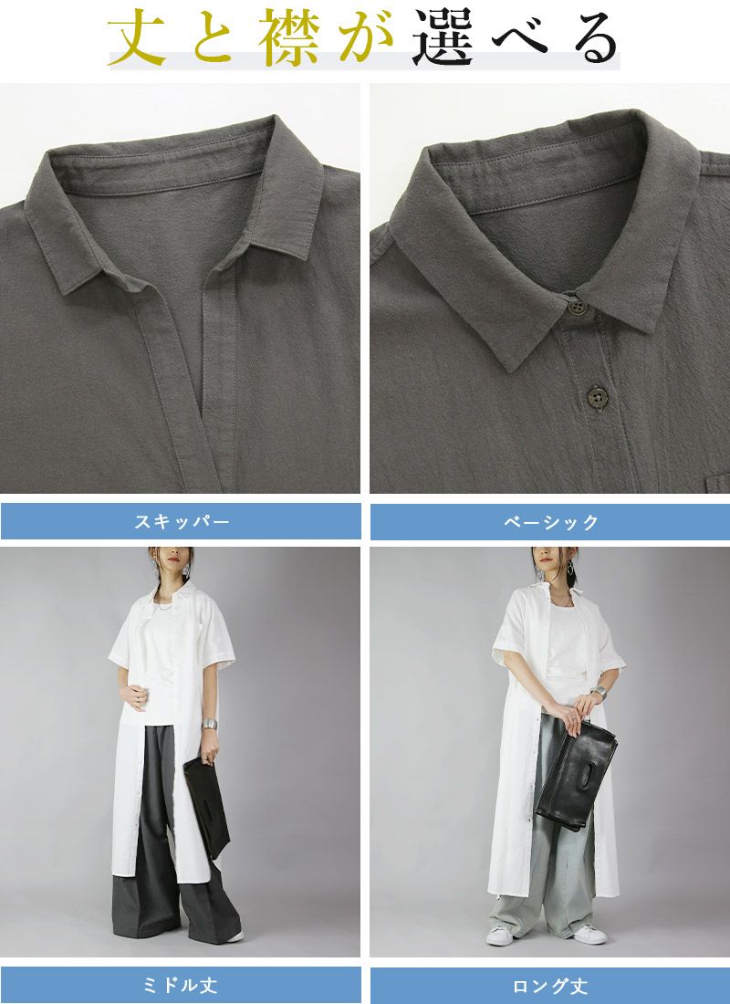 \ロング丈が登場!/抜け感のある着こなしが叶うシャツワンピ♪大人スキッパー&着回しベーシック、さらに丈が選べる4type!