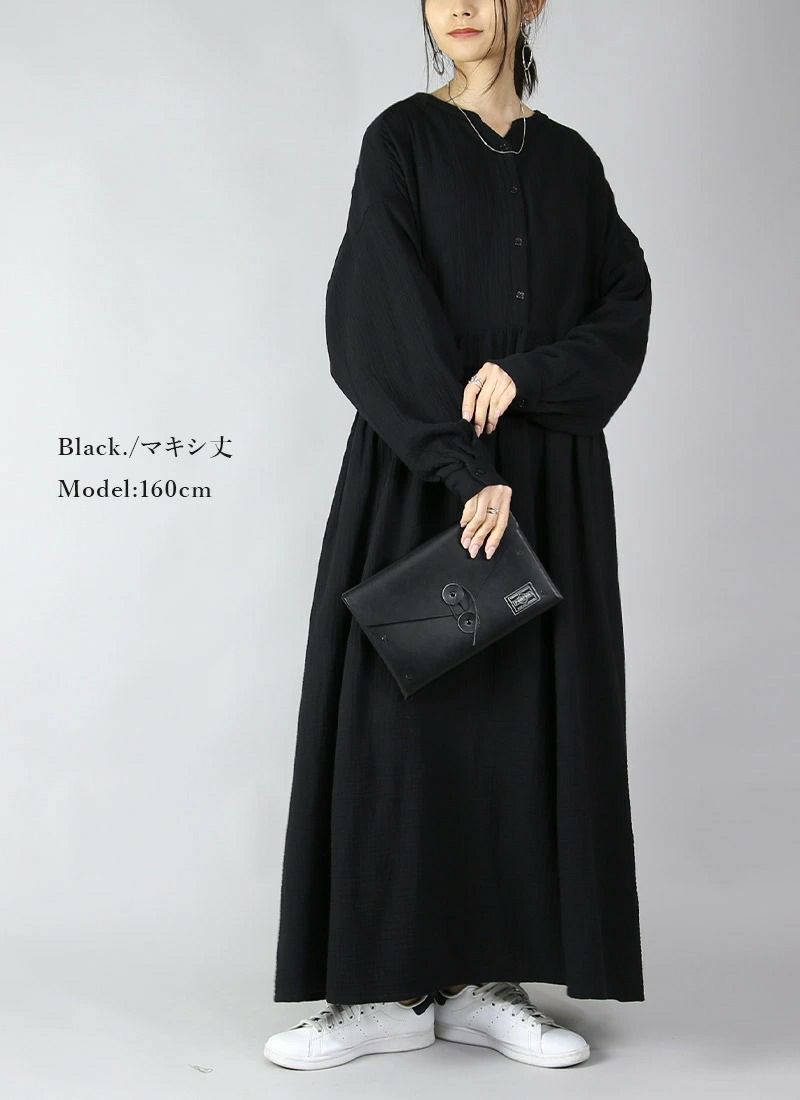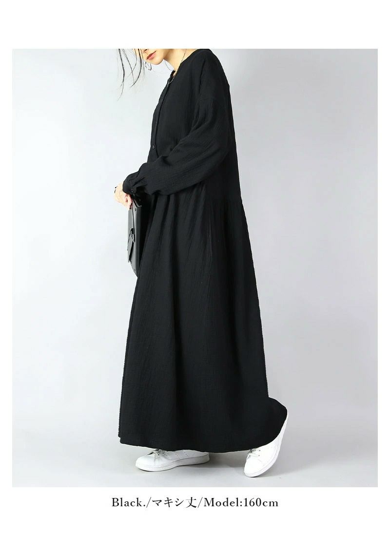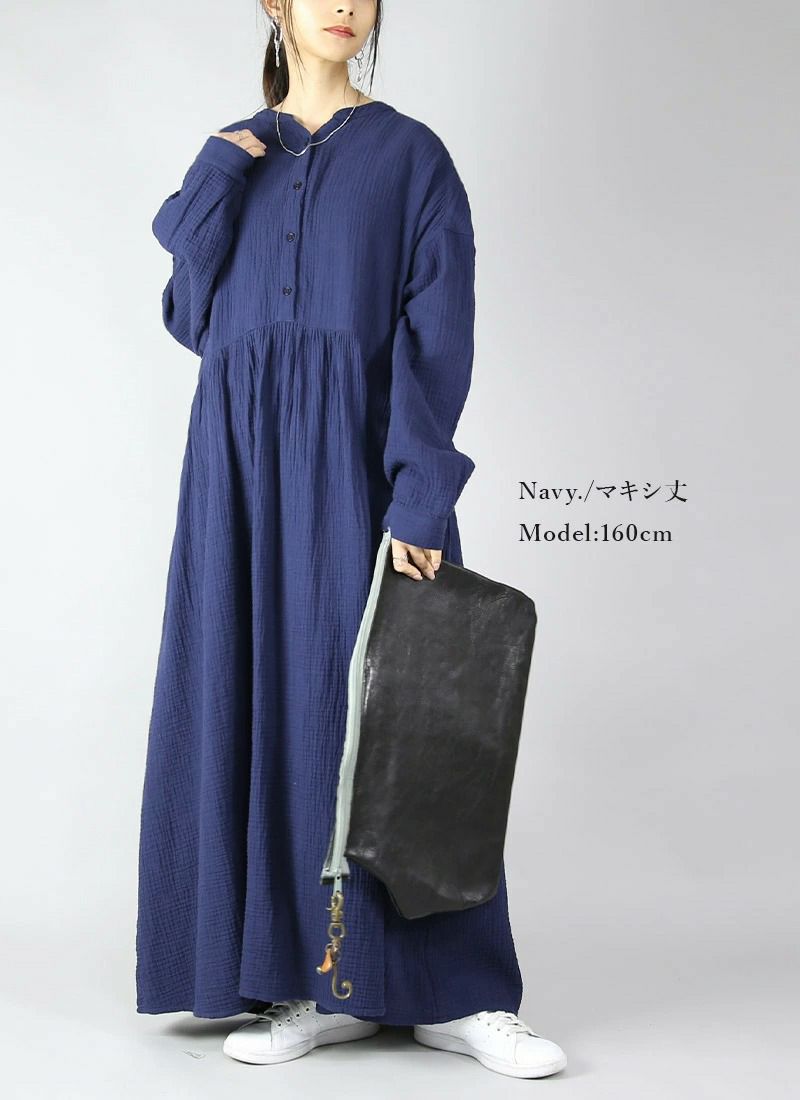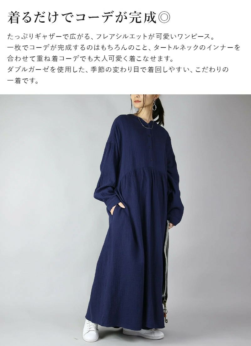 前ボタンフレアダブルガーゼワンピース M L 【メール便対応不可】