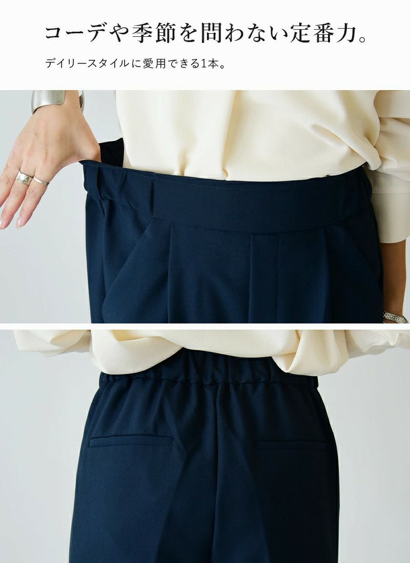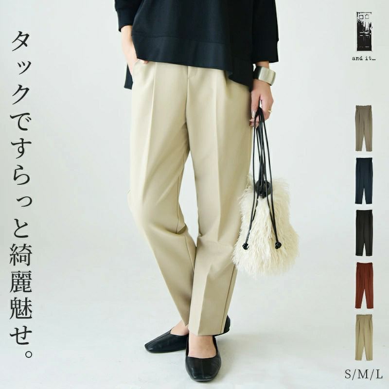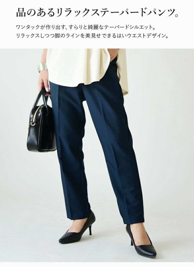 楽なのに脚のラインすっきりキレイ魅せ!上品で大人の品があるきれいめテーパードパンツ☆ ワンタックハイウエストテーパードパンツ S M L LL 【メール便対応可】