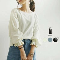 肌触りよく、ゆったりカットソー。長袖Tシャツはデザインによって野暮ったくなるからめっちゃ良い。袖の可愛さが素敵。合わせやすいし、カーキにしたので落ち着いている。秋が楽しみ。