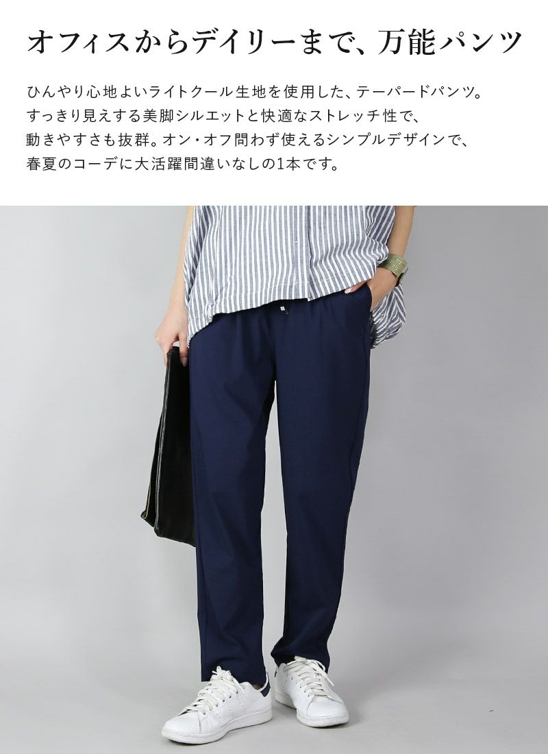 他の画像を見る すっきり見えする美脚シルエットでオン・オフ問わず使える!ひんやり心地良く快適な穿き心地に◎ 【受注発注】 ライトクールストレッチテーパードパンツ M L 【メール便対応可】 販売価格 ¥ 3,099 税込 販売期間 2025/03/24 20:00 〜 詳細を見る お気に入りに登録する