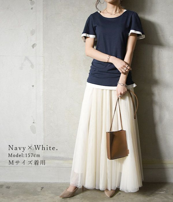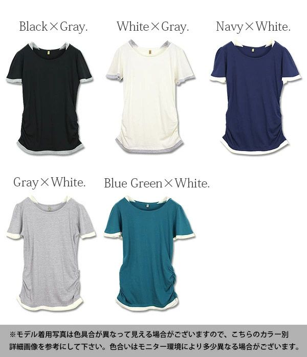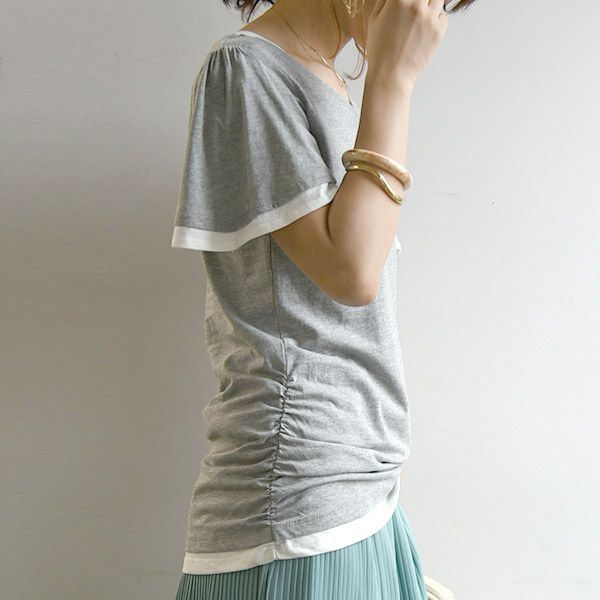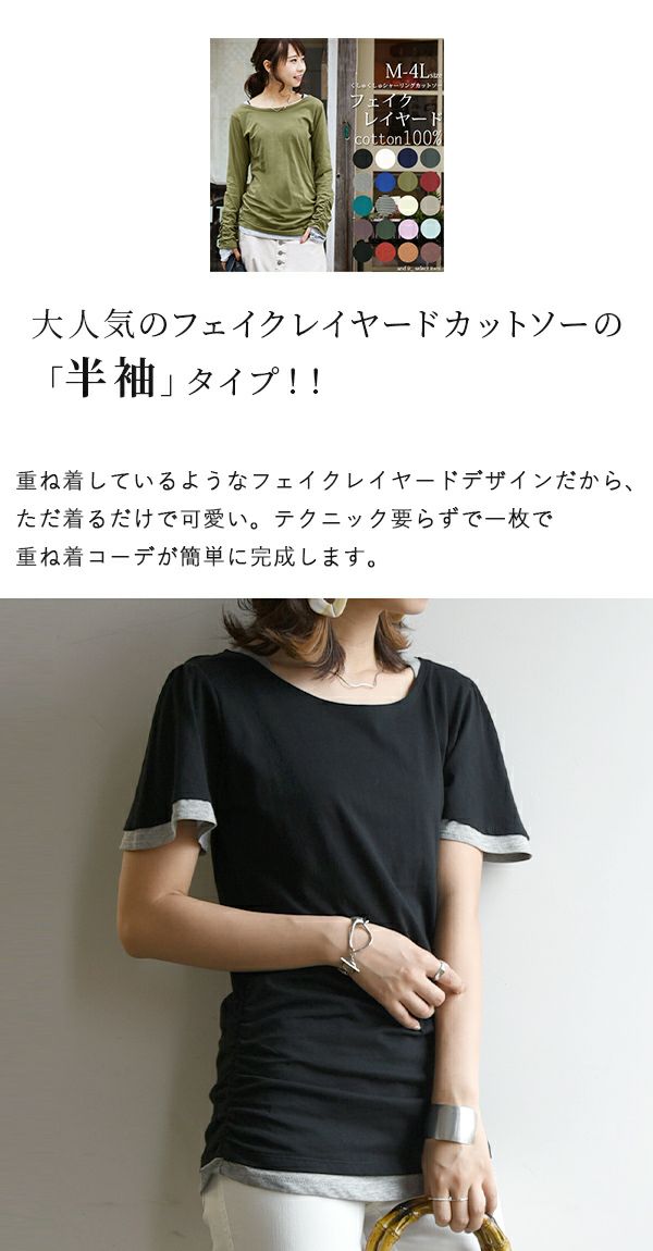 他の画像を見る Tシャツ あの大人気のフェイクレイヤードカットソーから半袖verが登場!!まるで重ね着しているかのようなデザインが可愛い★ フェイクレイヤードくしゅくしゅシャーリング半袖カットソー 【メール便対応可】 販売価格 ¥ 2,899 税込 カートに入れる お気に入りに登録する