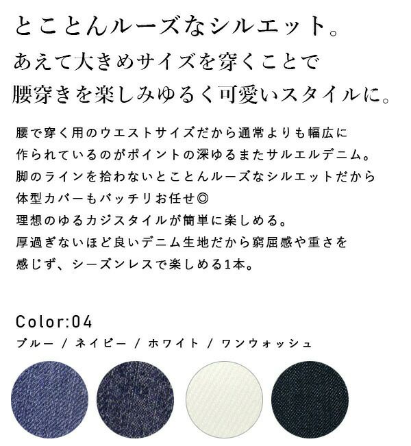 他の画像を見る 大きめサイズだから締め付け感なく穿けちゃう★ゆるいシルエットが抜け感のある大人のカジュアルさを演出! 深ゆるまたサルエルデニムパンツ S M L LL 3L 4L 【メール便対応不可】 SALE 通常販売価格 ¥ 5,999 のところ 販売価格 ¥ 3,999 税込 販売期間 2025/12/10 19:00 〜 2025/12/11 18:59 カートに入れる お気に入りに登録する