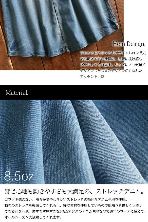 他の画像を見る ベイカーポケットがこなれ感のあるカジュアルスタイルに。ストレッチを効かせてロングスカートも動きやすく♪ ベイカーポケットストレッチデニムロングスカート 【メール便対応不可】 販売価格 ¥ 5,498 税込 カートに入れる お気に入りに登録する