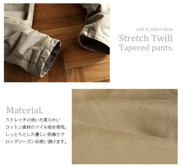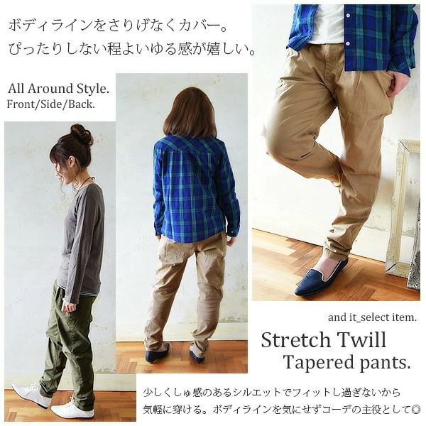 他の画像を見る ゆったりとしたルーズなシルエットが◎ストレッチの効いたツイル素材で楽に穿けちゃうのがポイント★ ストレッチツイルテーパードパンツ 【メール便対応不可】 販売価格 ¥ 5,199 税込 カートに入れる お気に入りに登録する