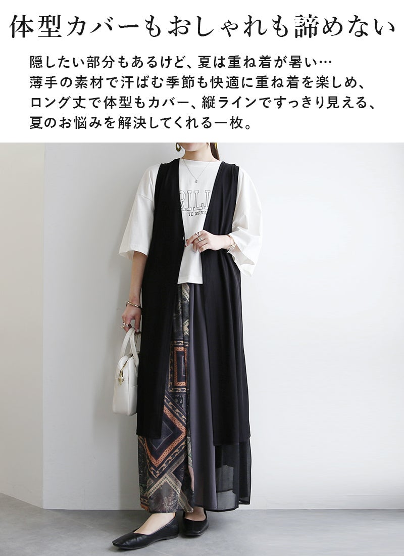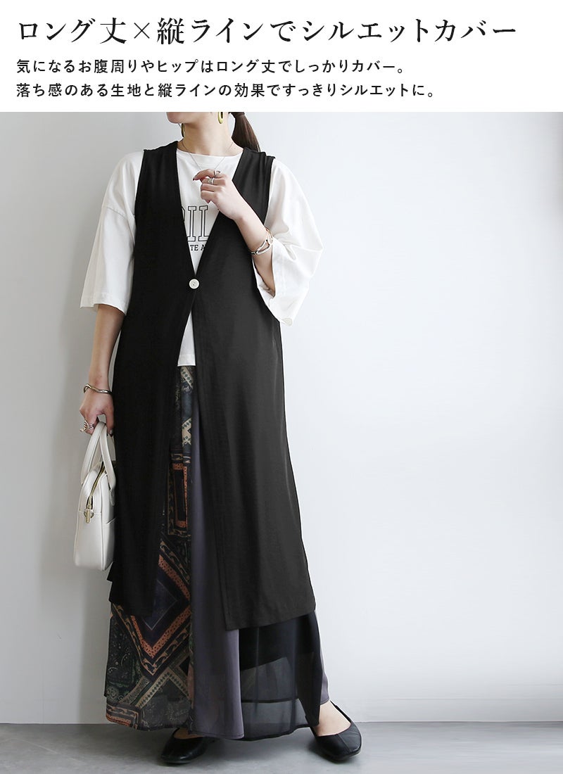 他の画像を見る 「1枚あると、毎日ラクになる。」 縦ラインで羽織るだけで、すっきり見え。 いつものコーデに合わせるだけで雰囲気も違った雰囲気に。 スリットロングジレ F 【メール便対応可】 販売価格 ¥ 2,999 税込 在庫切れ カートに入れる お気に入りに登録する